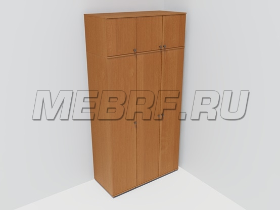 Шкаф для одежды с антресолью комбинированный трёхстворчатый с двумя отделениями, одно из отделений предусмотрено для верхней одежды и имеет одну полку и выдвижную штангу, другое отделение предусмотрено для белья и имеет четыре встроенные полки